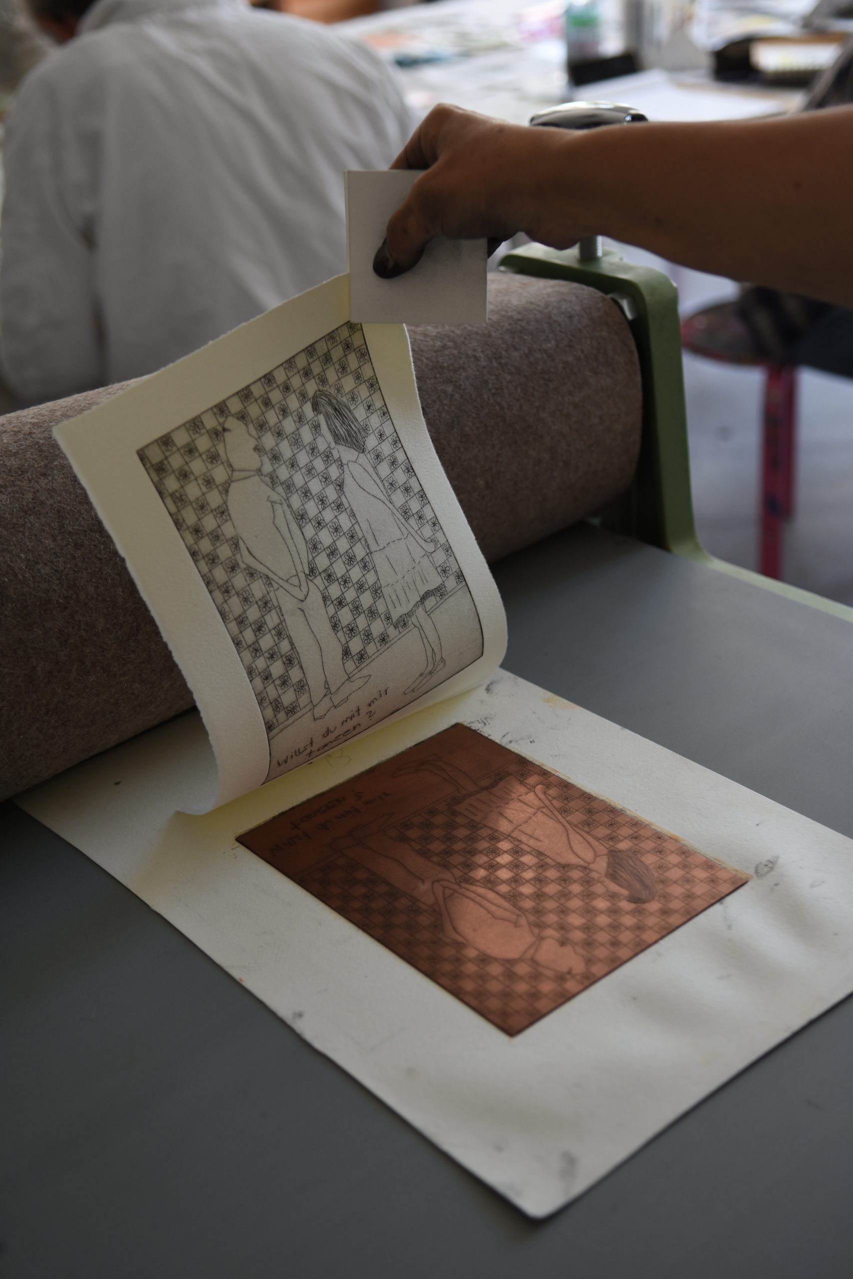Seit 2 Wochen hat die Kunstwerkstatt eine eigene Druckpresse für Radierkunst im Einsatz.