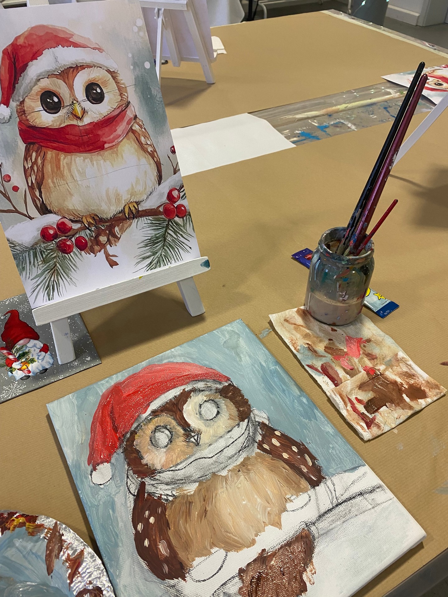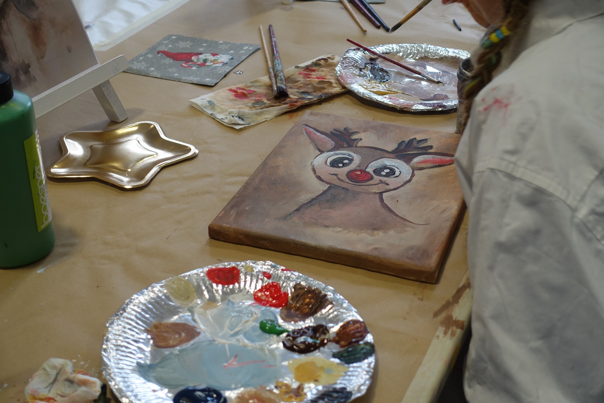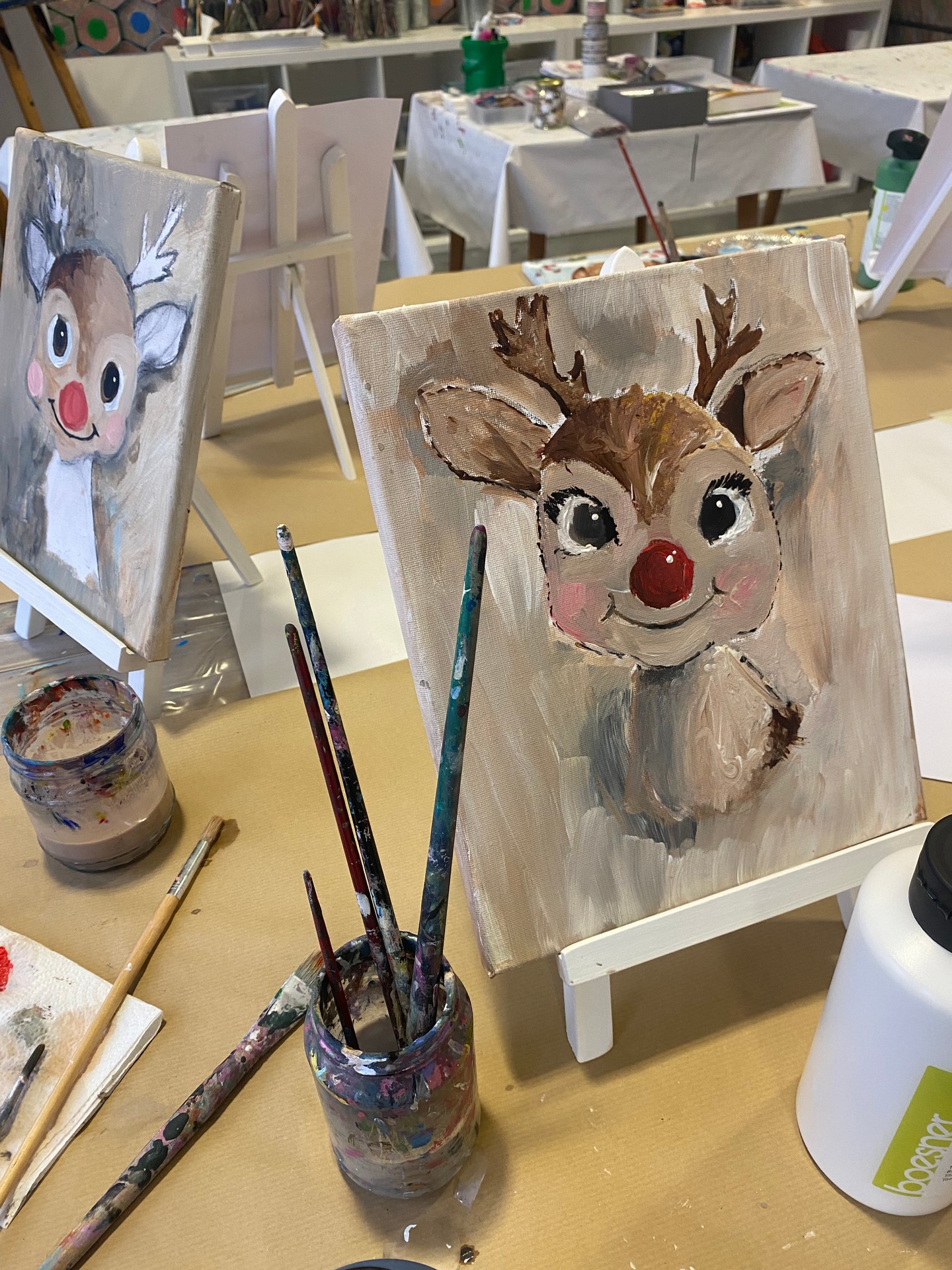 Auf Leinwänden lassen wir mit der Acrylfarbe zauberhafte Winterwelten entstehen und erwecken den Geist der Weihnacht zum Leben. Zusammen teilen wir die Vorfreude auf Weihnachten in unserer festlich geschmückten Kunstwerkstatt mit Kreativität, Euren Lieblingsplätzchen, Punch und stimmungsvoller Weihnachtsmusik.